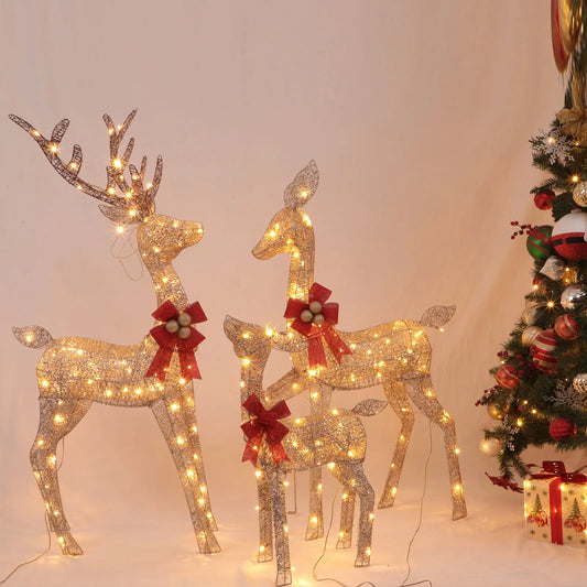 3D Reindeer Family Light Up Deer 3 Set with 210 LED Lights Kit Stakes