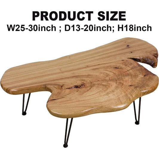 Natural Wood Coffee Table with Clear Lacquer Finish and Metal Hairpin Legs