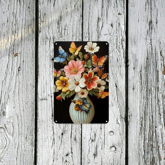 Rustic Butterfly and Flower Iron Painting Frameless Iron Painting - Vintage