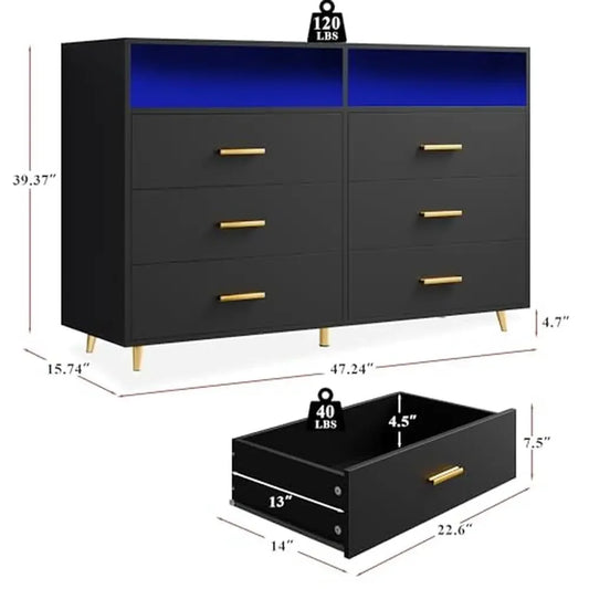 LED Lights Wood Dresser Black 47.2"W x 15.7"D x 39.4"H