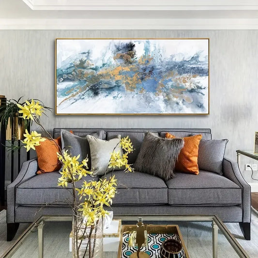 Abstract Blue Gold Marbling Canvas Wall Art Decor Living Room Bedroom