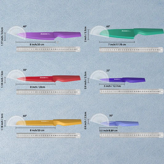 12 Pcs Color-Coded Kitchen Knives Set, 6 Color Anti-Rust Coating Stainless Steel