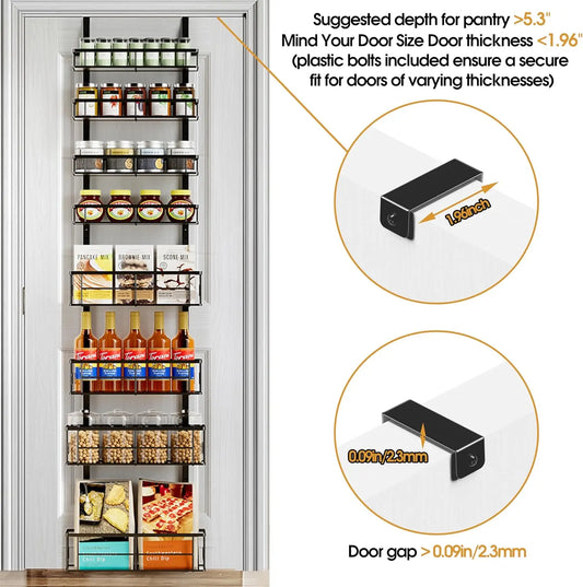8-Tier Over Door Pantry Organizer & Rack, Metal Spice Shelves, Kitchen Closet